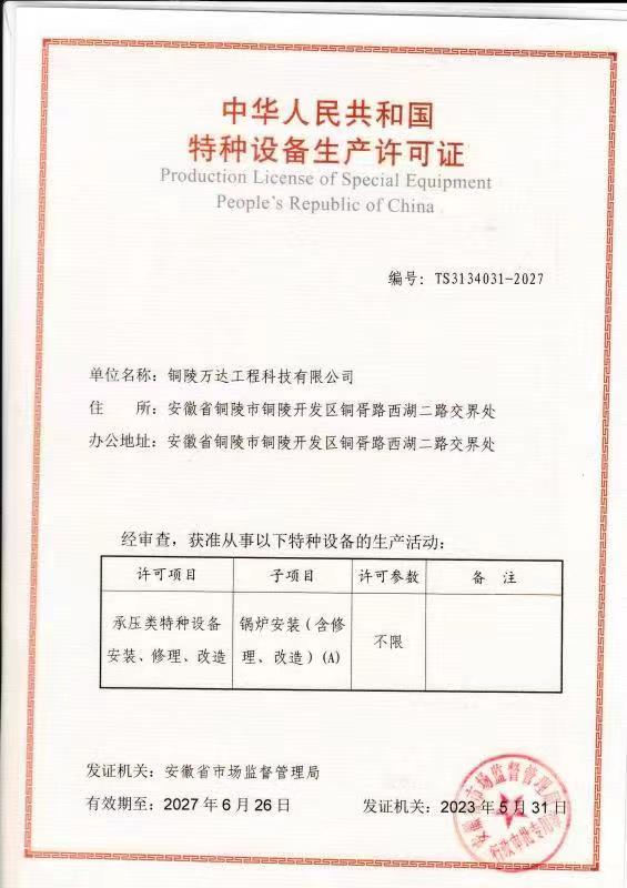 鍋爐設(shè)備生產(chǎn)許可證