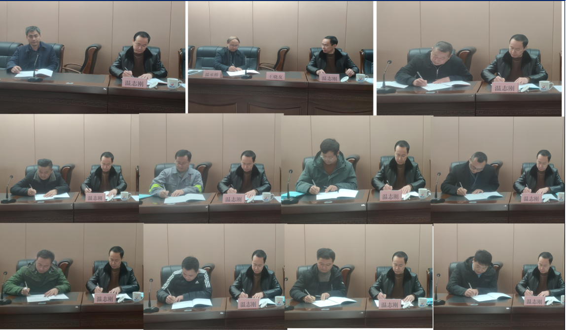 大會(huì)第三項(xiàng),由公司董事長(zhǎng)、總經(jīng)理溫承橋與生產(chǎn)副總溫志剛、安環(huán)部長(zhǎng)程翔;生產(chǎn)副總溫志剛和各項(xiàng)目部負(fù)責(zé)人簽署各級(jí)《安全生產(chǎn)責(zé)任狀》。